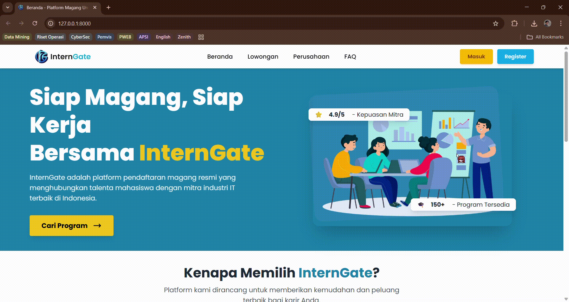 Website Magang ini adalah hasil project saya bersama teman selama pembelajaran Pemrograman Web II Website ini memberikan layanan untuk mahasiswa yang ingin mencari program magang